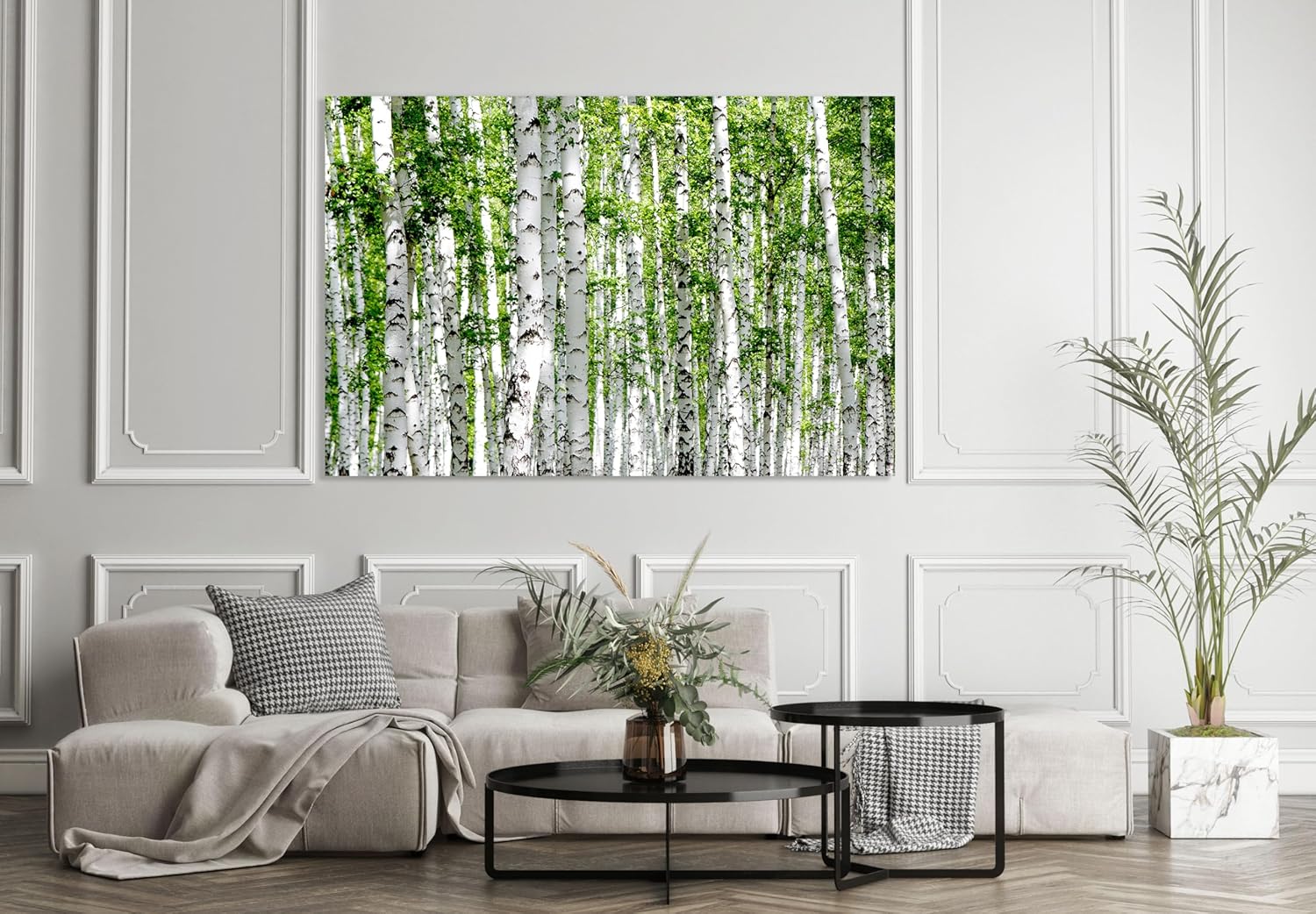 Nature Wall Art Prints - Ocean Forest Mountain Lake Canvas Landscapes - Small to Extra Large Living Room Bedroom Kitchen Bathroom Décor (Green Brich Trees, 28L" x 41W")