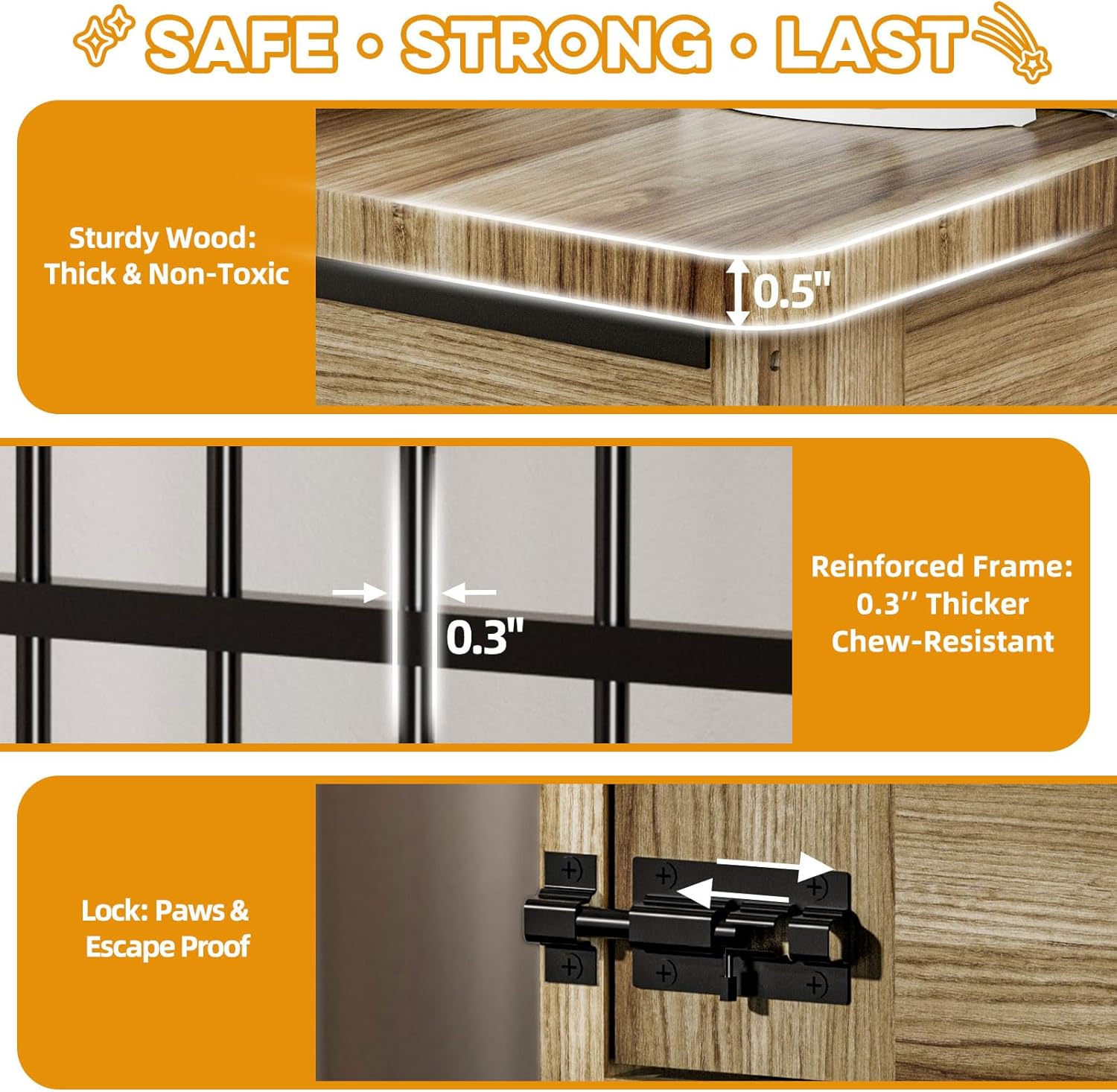 - Chew-Resistant & Durable Structure: Built with 0.3" reinforced steel bars and a 0.5" thick solid wood base. Supports long-term use without warping or breaking—even with energetic large dogs